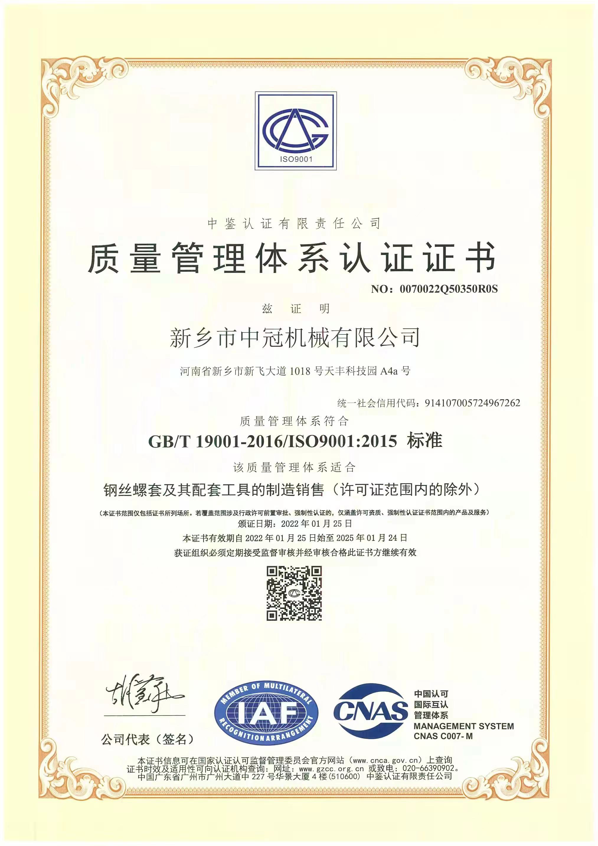 新鄉(xiāng)市中冠機(jī)械有限公司是從事鋼絲螺套產(chǎn)品及配套安裝工具技術(shù)研發(fā)、產(chǎn)品制造和銷(xiāo)售,并為客戶(hù)提供螺套使用全過(guò)程技術(shù)支持和服務(wù)的自動(dòng)化制造型企業(yè)。